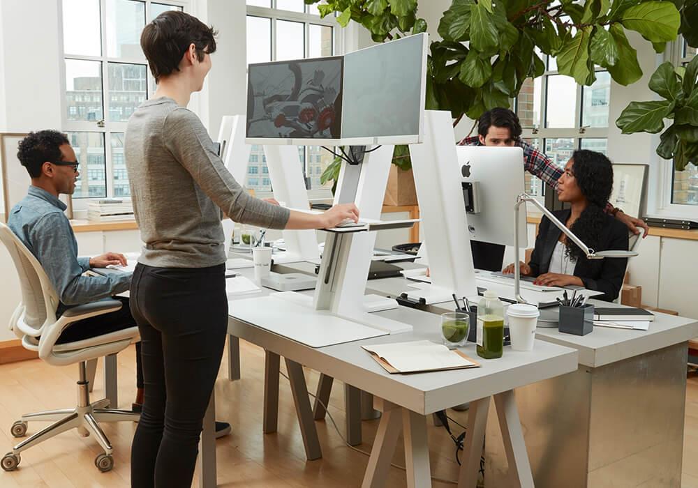 Gün boyunca oturma ve ayakta durma arasında geçiş yapmak üretkenliği ve ruh halini artırabilir ve hareketsiz davranışların olumsuz etkilerini azaltabilir. QuickStand Eco’nun kesintisiz çalışması kullanımı hızlı bir şekilde oturmanıza veya durmanıza olanak tanır.